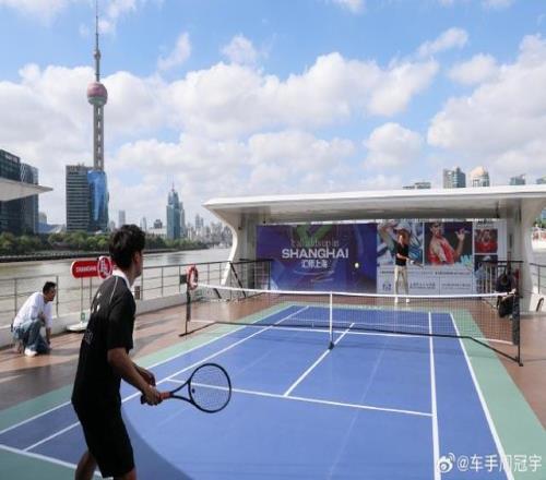 上海大师赛举办期间,超级挚友费德勒携手中国首位F1车手周冠宇登上浦江游轮,在遍览江景的同时,打了一场特别的水上网球。
