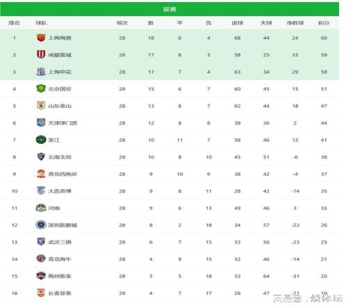 第28轮比赛战罢,三支争冠球队全都不胜,积分榜排名没有发生变化。至此,争冠主动权依然握在上海海港的手里,接下来海港将对阵浙江队、大连英博,两场都拿下即可确保夺冠。