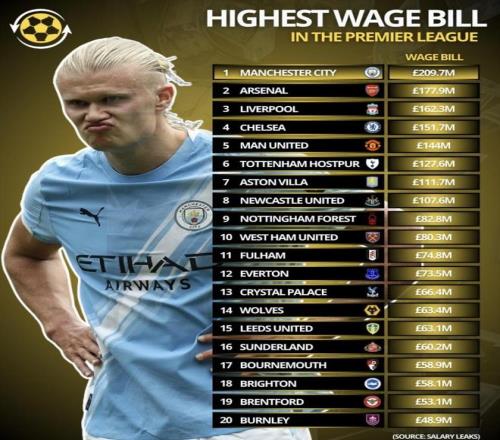 曼联、热刺的薪资盘子很高,但名次不达预期,单位成本偏高;西汉姆与诺丁汉森林也存在“投入不小、回报一般”的情况。