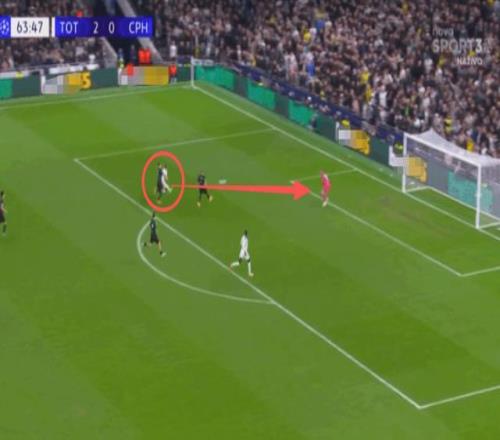 热刺vs哥本哈根一役,第64分钟,范德芬上演超级奔袭表演: