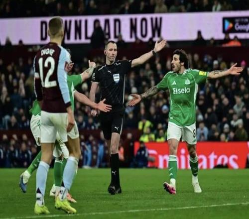 比赛还出现了维拉门将比佐上半场因鲁莽犯规被罚下的情况。最受关注的争议判罚是迪涅在自家禁区内几码处手球,却被判罚禁区外任意球。